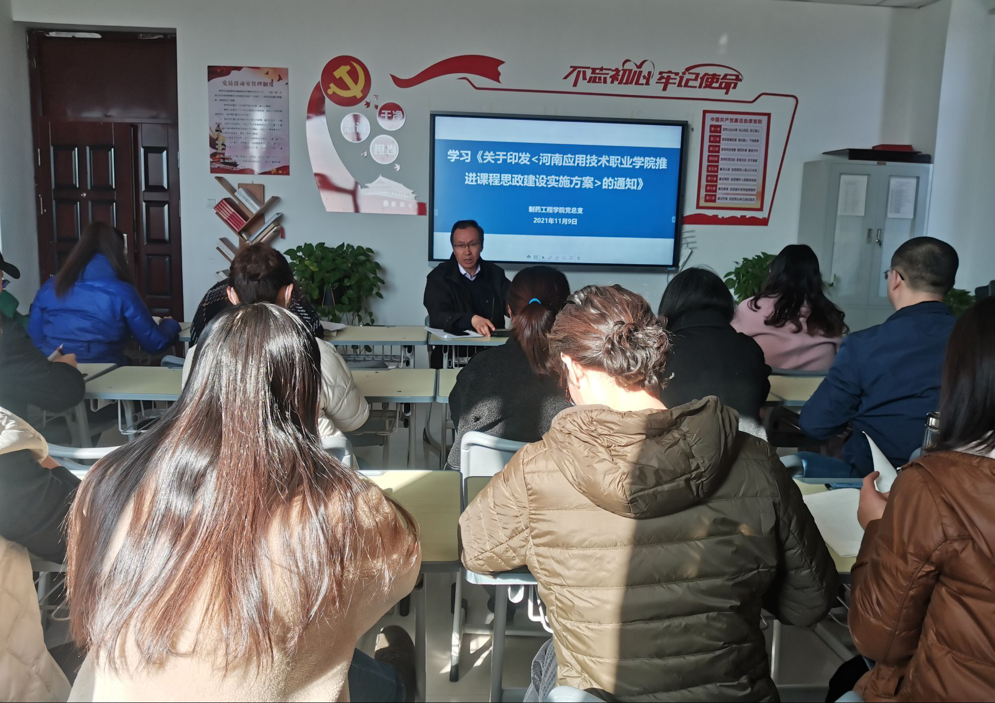 为充分发挥课堂主渠道在学校思想政治工作中的重要作用,切实把思想政治教育贯穿人才培养体系全过程,全面推进开云课程思政建设,提高课程思政育人作用,根据学校工作安排,制药工程学院党总支于2021年11月9日下午2点在501党员活动室,组织学习《kaiyun开云官方网站推进课程思政建设实施方案》。制药工程学院党总支副书记韩恩远主持会议,党总支全体教职工参会。