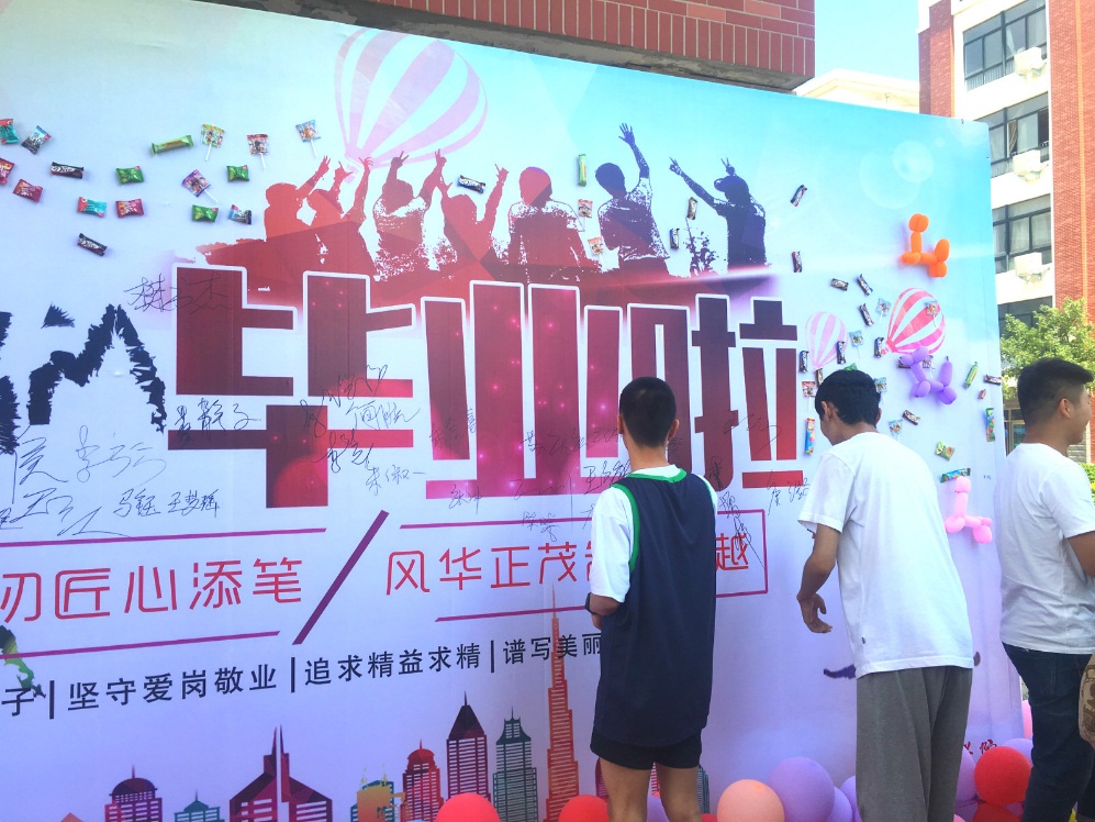 志当存高远,无愧梦少年;昂首走天下,母校留心间。毕业临行前,把心里话对母校述说,与师弟师妹分享。将自己的寄语、对母校的祝福连同自己的名字最后一次写在留言墙上。