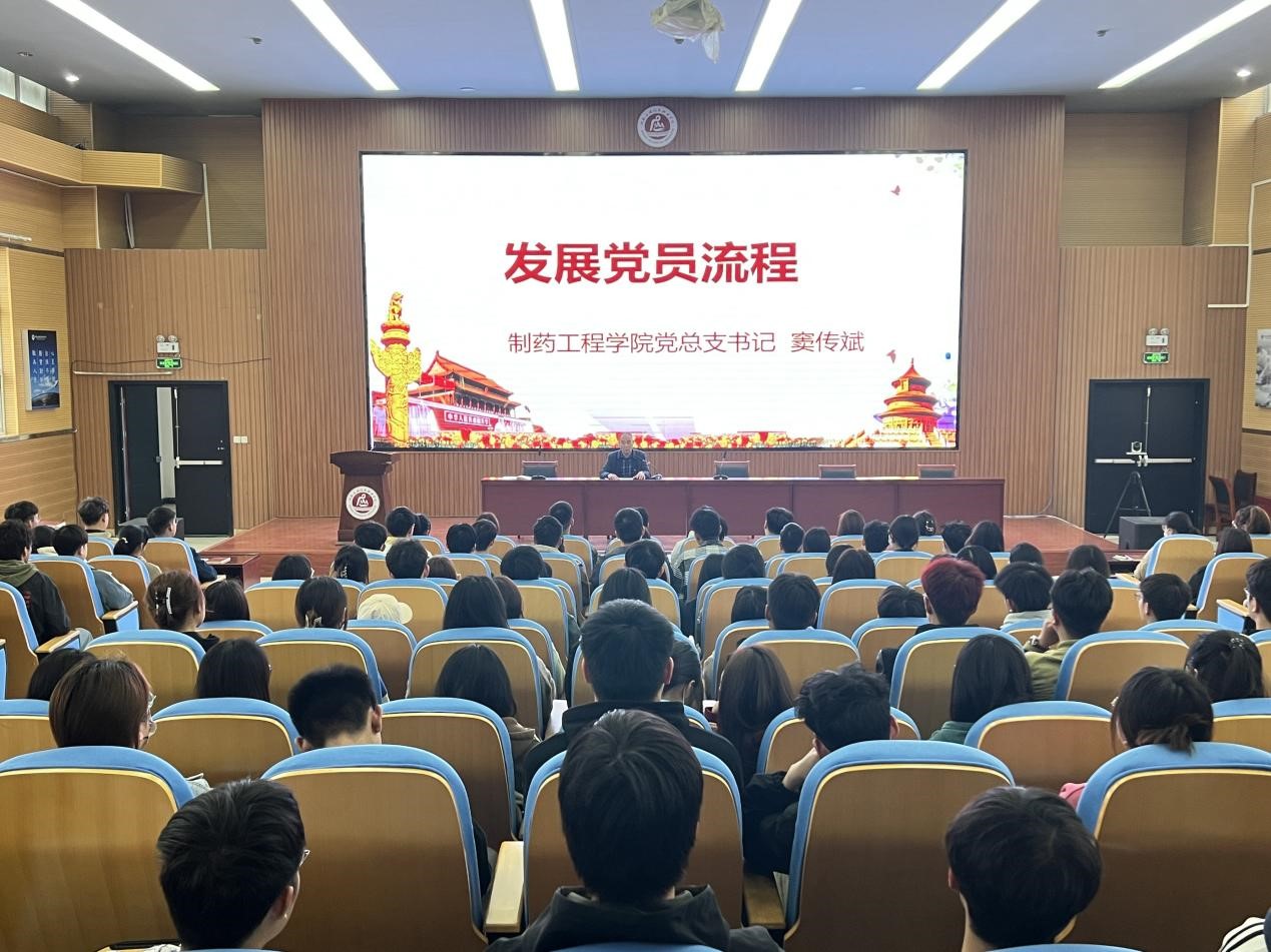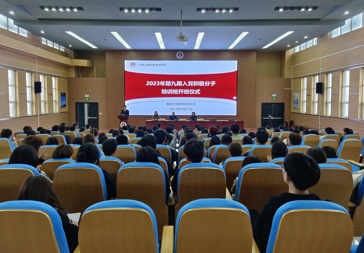 为切实从源头上严把党员发展“入口关”,系好“第一粒扣子”,加固发展党员的“蓄水池”,进一步加强入党积极分子爱国情怀、端正入党动机、明确入党态度,进一步做好新时代党员发展,3月21日下午于行政楼五楼报告厅举行了2023年制药工程学院党总支第九期入党积极分子培训班开班仪式。制药工程学院党总支书记窦传斌、副书记白小茗、团总支书记曹璐及2023年第一批211名入党积极分子参加了本次开班仪式,会议由学生会主席刘磊主持。