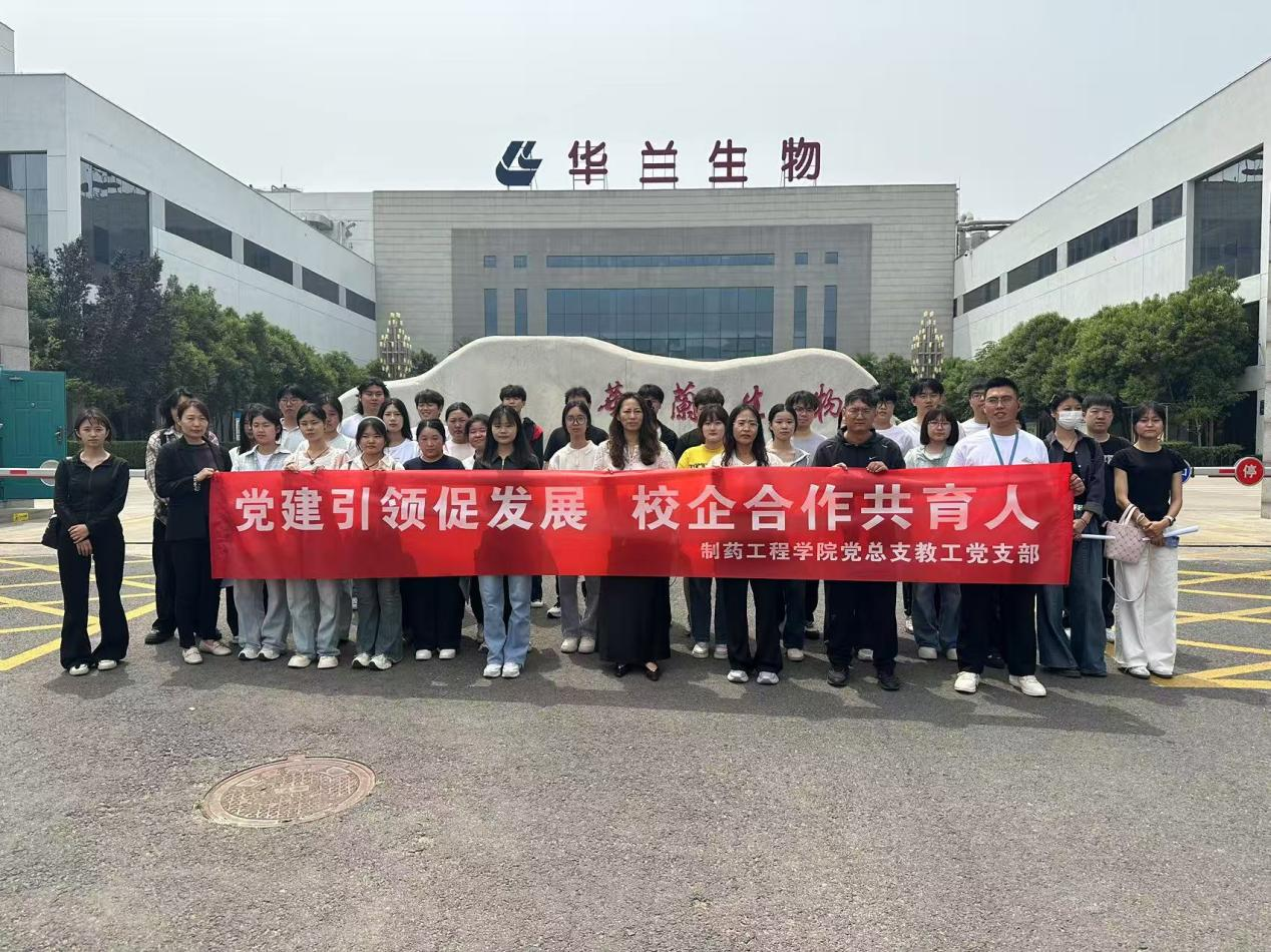 为加强基层党组织建设,充分发挥党建引领、校企合作、共建共创的示范作用,2025年5月8日,制药工程学院党总支教工党支部党员以及学生入党积极分子代表赴新乡市华兰生物工程股份有限公司开展以“党建引领促发展、校企合作共育人”为主题的党日活动。