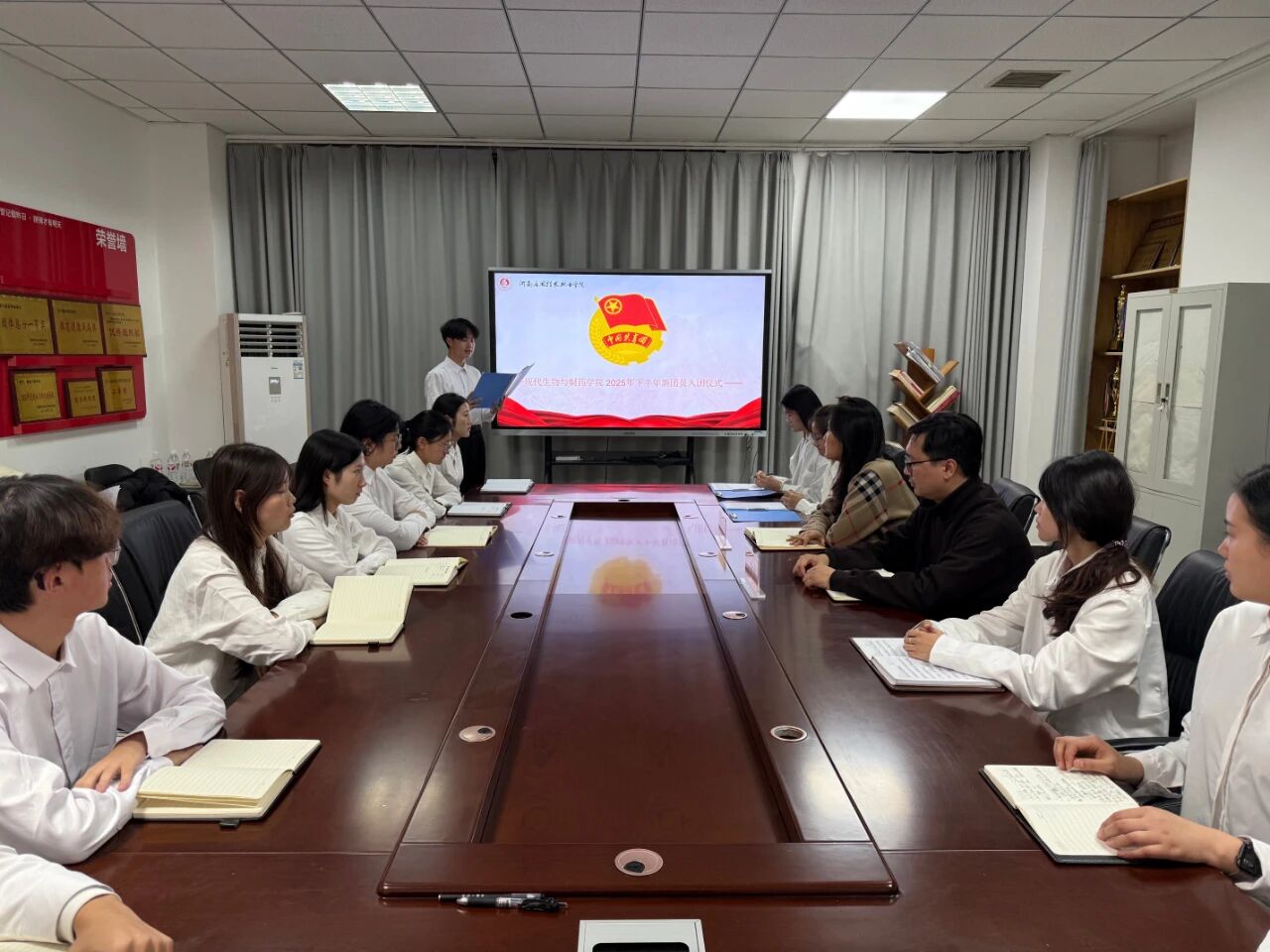 岁聿云暮,薪火绵延。为夯实党团一体化培养根基,凝聚青年奋进力量,12月4日,2025年下半年kaiyun开云官方网站新发展团员入团仪式于行政楼301会议室隆重举行。学院党总支副书记王俊永、团总支书记曹璐出席仪式,优秀团员代表与全体新团员共同参加,仪式由化制2401班任政泽主持。