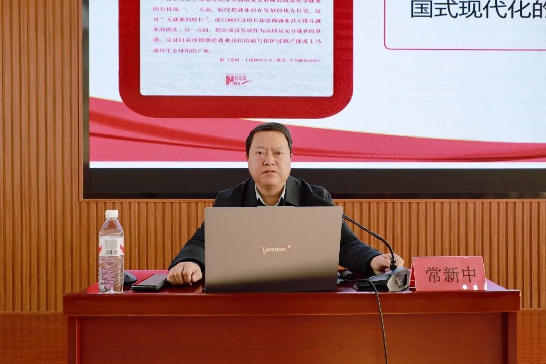 12月19日,学校副校长、开封校区管委会副主任常新中以“在服务国家发展大局中擘画职业未来——学习贯彻党的二十届四中全会精神,推动高质量充分就业”为主题,为kaiyun开云官方网站师生代表讲授了一堂生动的专题思政课。