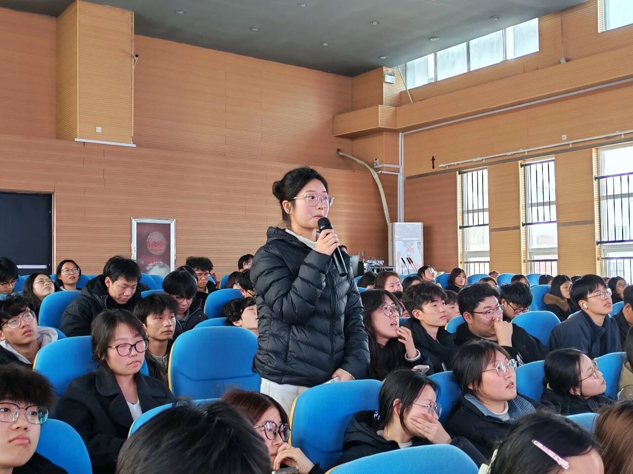 曹璐围绕“团章概述”“团章总则”以及“团员的权利、义务与纪律”三个部分,展开了系统讲解。她结合了共青团发展历程与新时代青年的使命担当,引导全体学员深刻认识到,团章是管团治团的总章程,是全体团员必须共同遵守的根本行为规范。讲解过程中,她还详细阐述了团旗、团徽、团歌的深刻内涵与象征意义,帮助学员们进一步增强了对团组织的认同感、归属感和荣誉感。最后,她勉励全体学员要以此次团课学习为新的起点,不仅在思想上深刻认同团章,更要在行动上自觉践行团章要求,时刻以团员标准严格要求自己,积极向团组织靠拢,努力将个人理想融入国家发展和民族复兴的伟大事业中,争取早日成为一名光荣的共青团员。