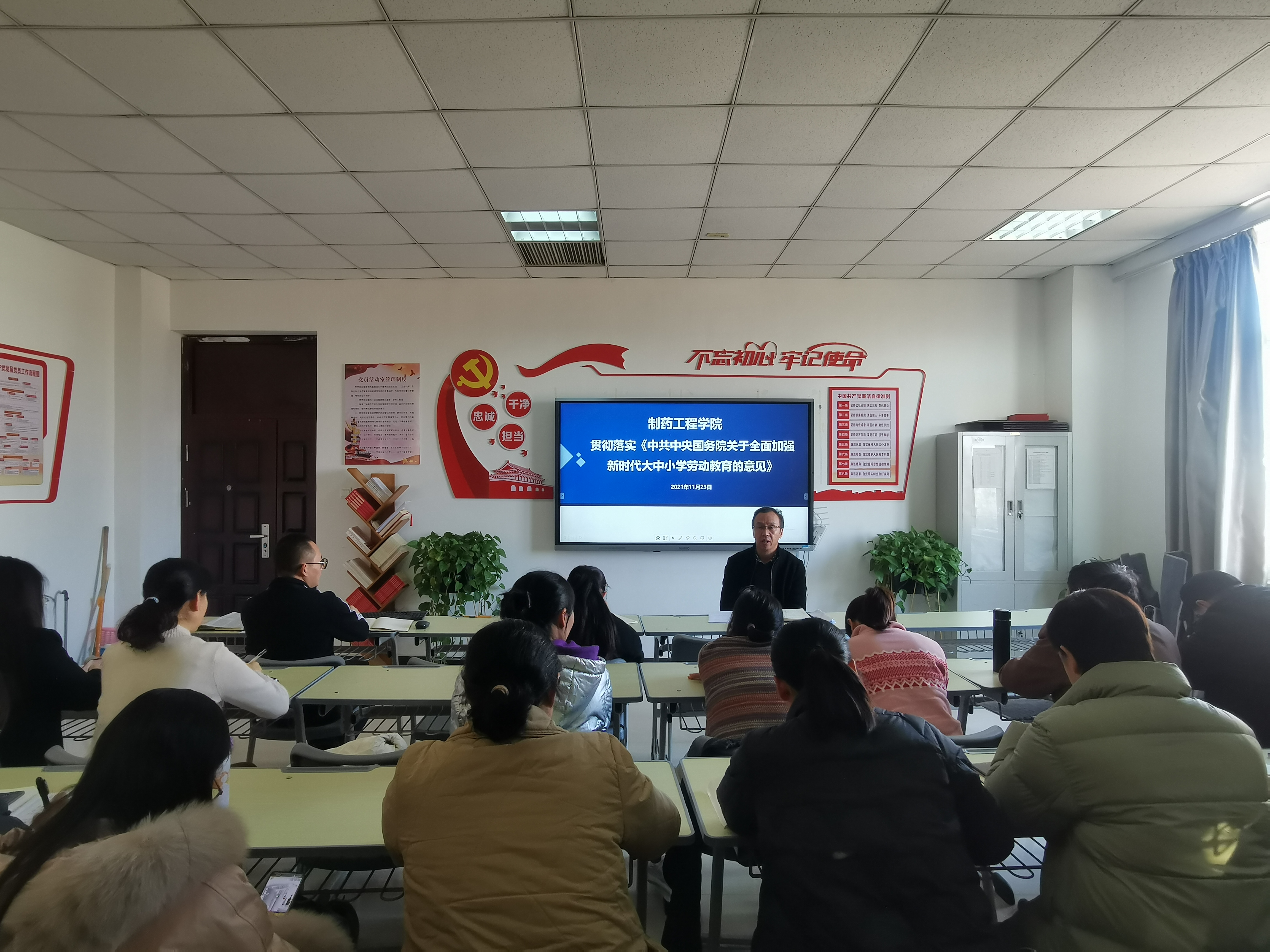 2021年11月23日下午,开云组织全体教师与辅导员在501室召开会议,学习我校制定的《劳动教育》实施方案和《劳动教育》课程标准。会议由制药工程学院院长韩恩远主持。