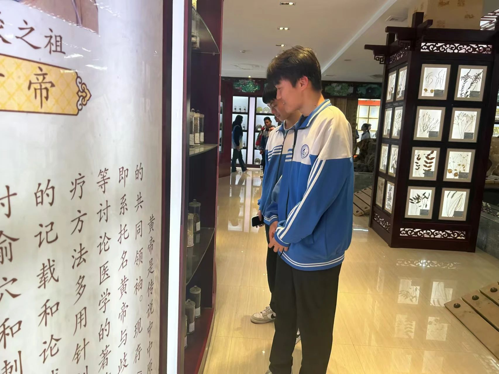 随后,在志愿者带领下铁路中学师生参观了中医药博物馆和医药学院健康管理实训室。博物馆内丰富的中药标本,结合多媒体辅助展示,全面地展示了中医药的发展历程。在数字化体验区,师生通过全息设备沉浸式观看古老医案、药材生长等动态影像,感受中医药文化魅力。伴随博物馆讲解员深入浅出的讲解,使大家得以沉浸式地体验和领略中医药文化的博大精深。
