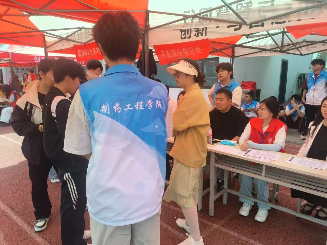 制药工程学院志愿服务队的志愿者们分工明确、各司其职,全方位助力考试顺利进行。引导同学们到学院服务点进行报到和信息确认;在信息核对时,志愿者们认真核对考生信息表,逐一核对考生证件。针对外地考生对校区环境不熟悉的情况,制作了 “考前路线图”;他们身着统一的志愿服装,脸上洋溢着青春的朝气与担当的坚定,用实际行动诠释着志愿服务精神,为单招考试增添了一抹温暖而亮丽的色彩。