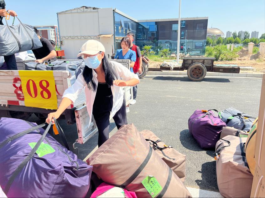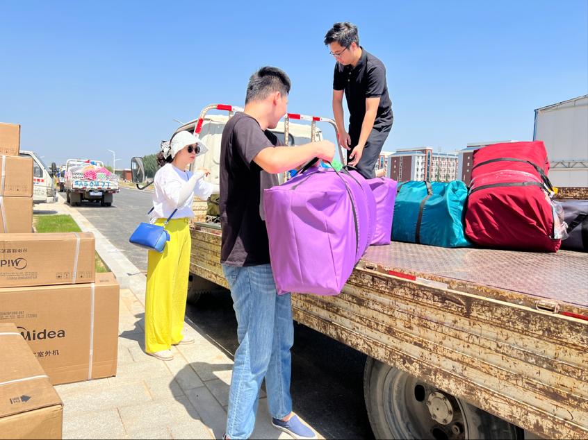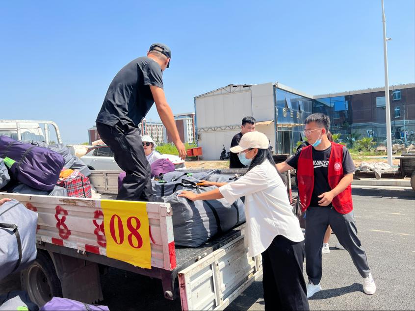 酷暑难当,时间紧凑,志愿者教师们安排合理、分工明确,搬家工人在志愿者见证下,向目标宿舍搬卸行李,清理行李件数,实施“流水作业”,保障了搬迁效率最高化、效果最优化。