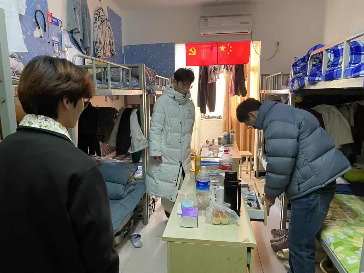 为进一步加强校园安全管理,消除宿舍安全隐患,营造安全、舒适、和谐的住宿环境,在本学期期末之际,制药工程学院党总支书记窦传斌、副书记白小茗带领全体辅导员及学生会干部成员开展宿舍安全检查。