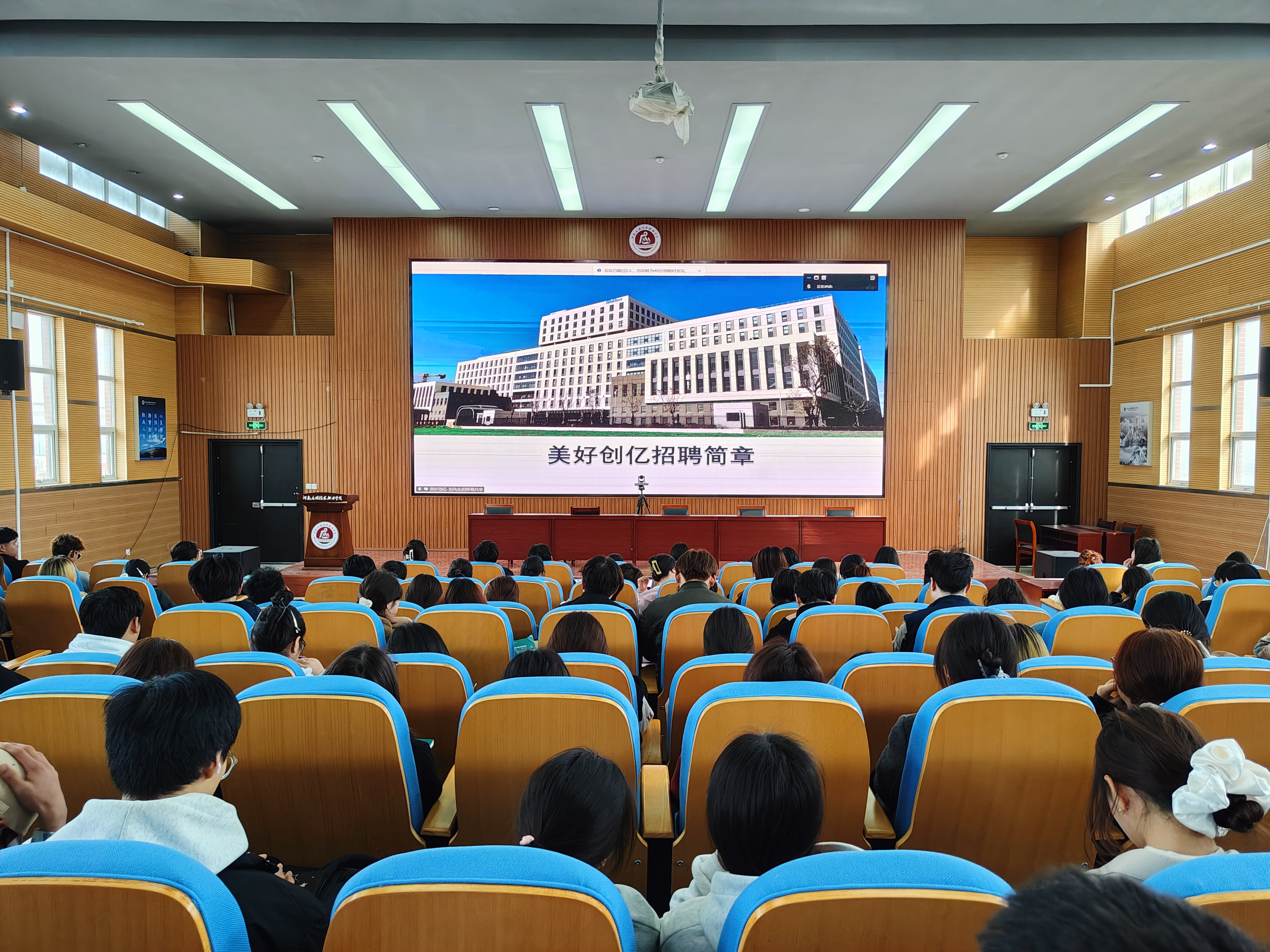 随后,两家企业分别开展宣讲。美好创亿医疗通过详实数据和案例,展示了企业在医药研发与生产制造领域的突出成就,并详细介绍了2025年校园招聘计划,强调对创新人才的重视。永胜宏基集团则重点介绍了核心业务、市场地位及完善的员工培养体系,为毕业生描绘了清晰的职业发展路径。