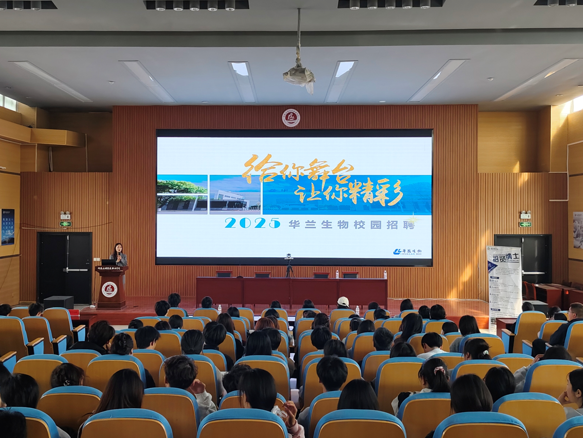 紧接着,华兰生物工程股份有限公司的代表上台发言。他们向学生们展示了华兰生物在生物医药领域取得的卓越成就以及广阔的发展前景。宣讲代表着重介绍了公司强大的研发实力、市场拓展规划以及员工福利政策,进一步点燃了学生们对华兰生物的向往之情。