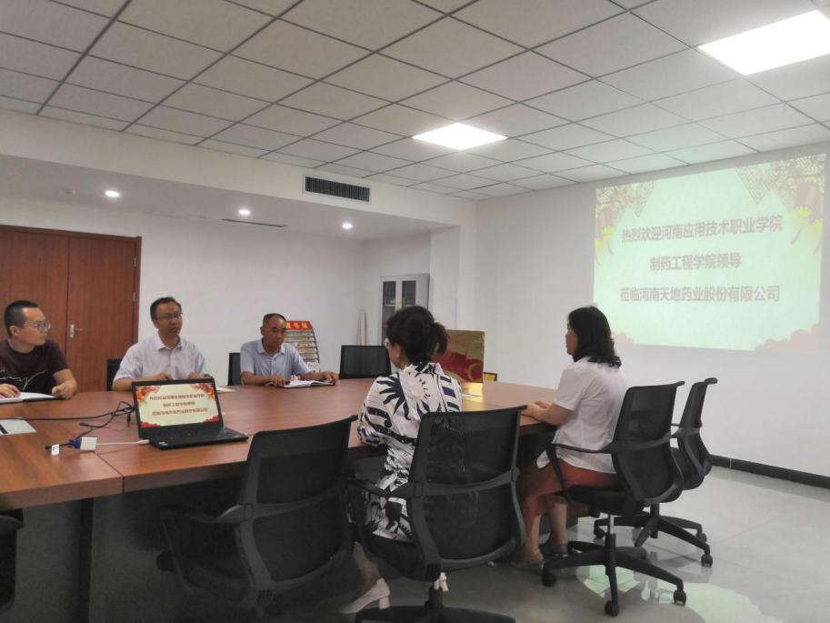 制药工程学院教师驻企工作站签约揭牌仪式于2021年6月22日在河南天地药业股份有限公司顺利举行。制药工程学院院长韩恩远与河南天地药业党委书记、副董事长贾云共同为教师驻企工作站揭牌。制药工程学院党总支书记窦传斌和部分教师以及天地药业部分领导参加了揭牌仪式。
