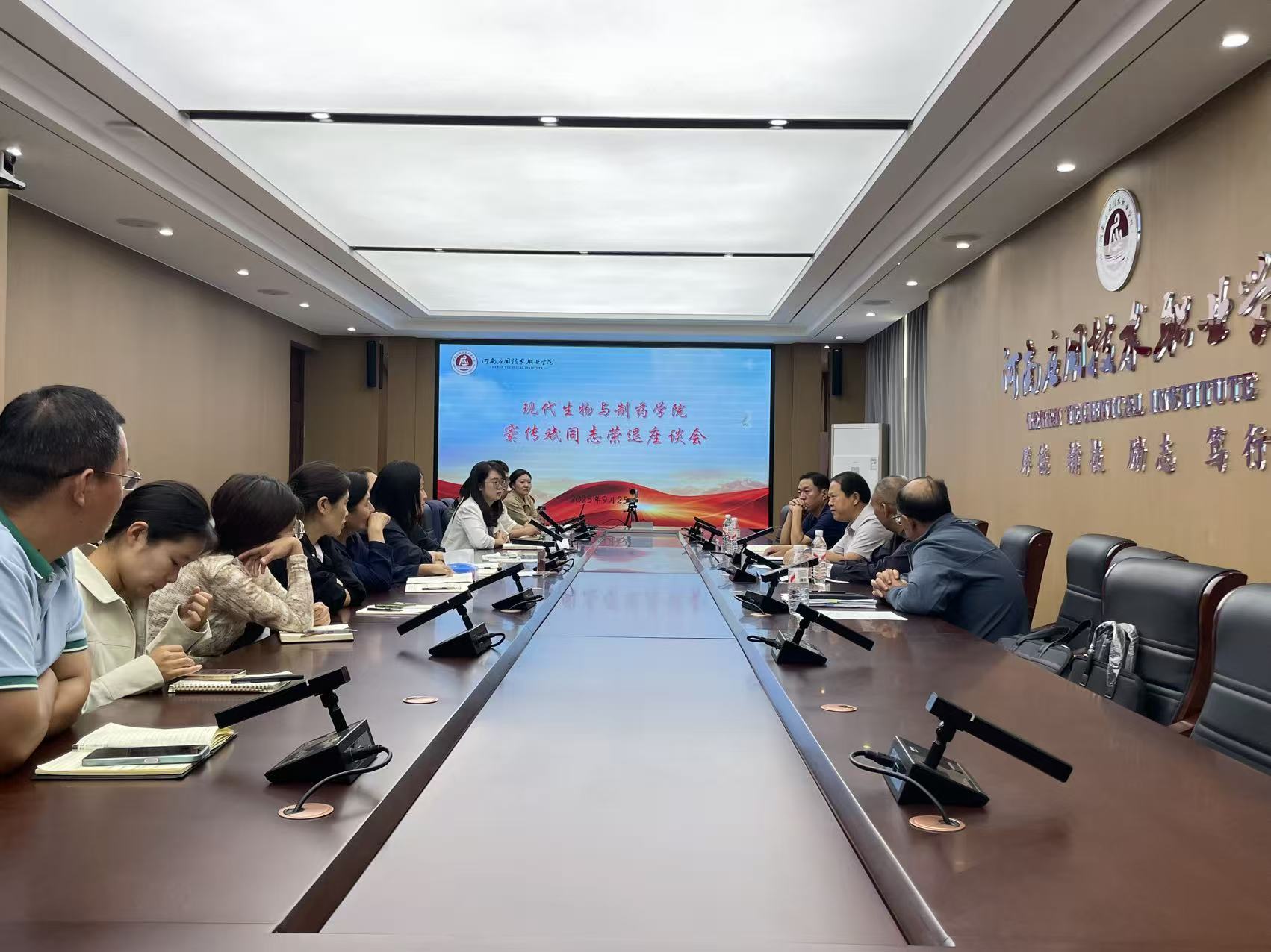 9月25日,kaiyun开云官方网站召开原制药工程学院党总支书记窦传斌同志荣退座谈会。副校长常新中出席,开封校区综合服务中心主任田军民、发展规划处处长吕玮陪同,学院班子成员、教师代表参会,会议由学院副书记白小茗主持。