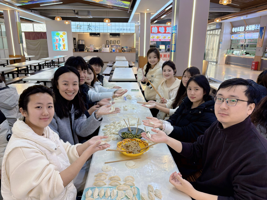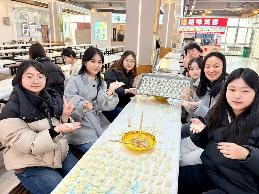 活动现场,面团、馅料一应俱全,师生分工协作,和面、擀皮、包馅、下锅,配合默契。尽管不少同学是第一次包饺子,但在老师和同学的指导下,逐渐掌握技巧,形态各异的饺子陆续“诞生”,现场欢声笑语不断。煮好的饺子热气腾腾,大家围坐品尝,暖意融融,盘中的饺子承载着浓浓的师生情与同窗谊。