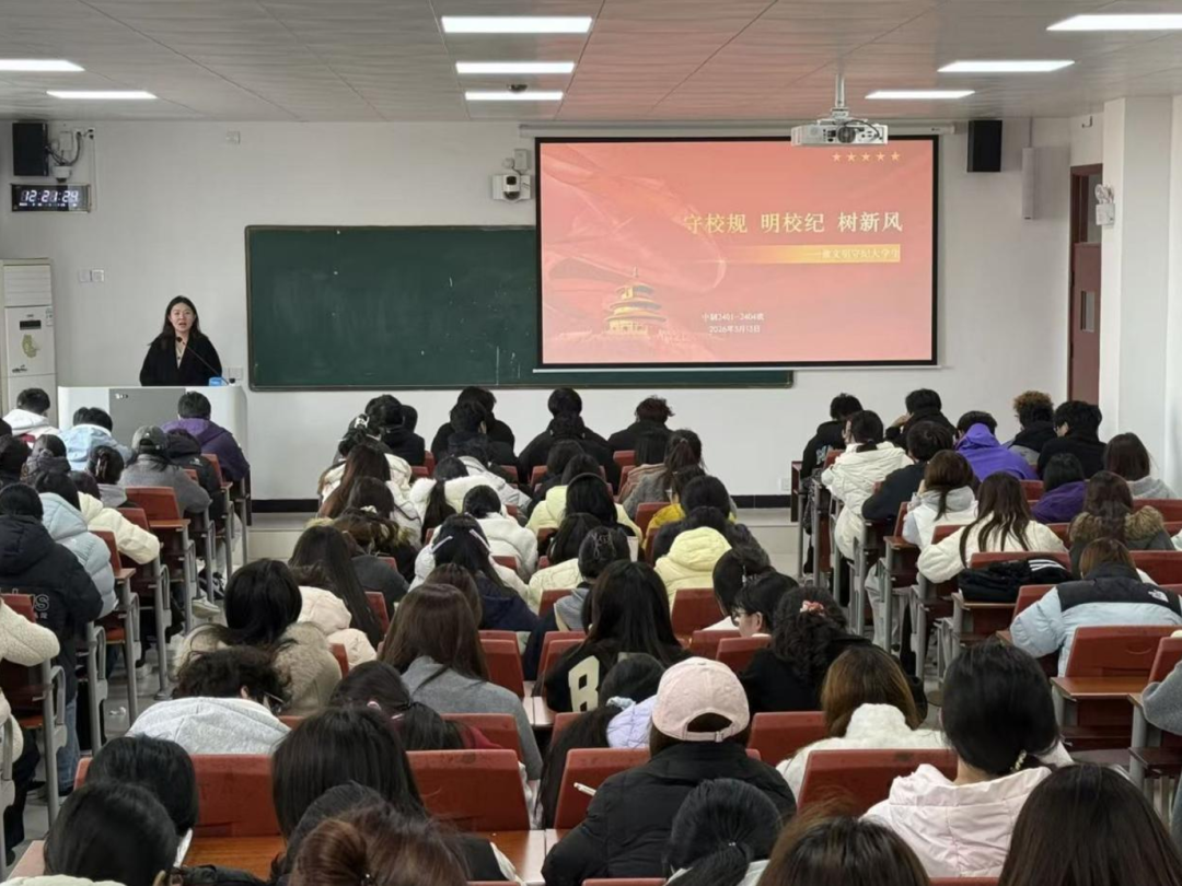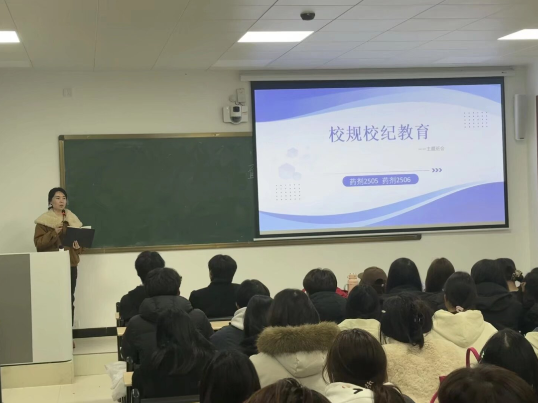 各班辅导员结合近年校园典型违纪案例,以案释法、以例明纪,重点强调了考试纪律、宿舍安全、请假销假、实习实训等管理事项,详细讲解违纪行为对应的处分流程与不良影响,提醒学生自觉抵制违规行为,珍惜在校学习生活时光。