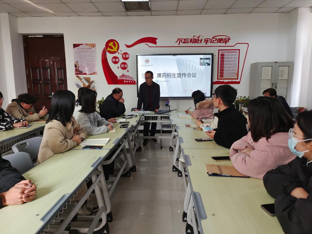 在2月16日下午,在我校开封校区南院办公楼501会议室,召开了制药工程学院2023年招生队伍动员大会。参加本次会议的有吕玮院长、孙高磊老师及信阳市、濮阳市负责招生的教师和同学。